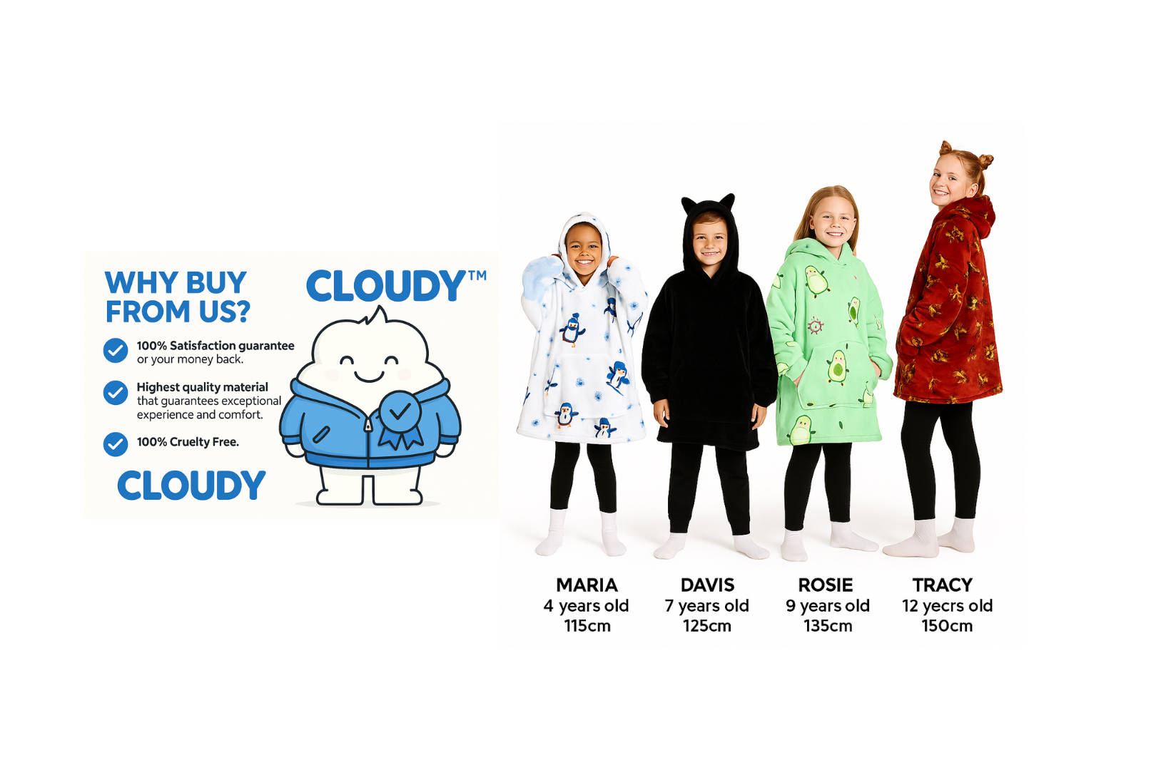From storytime to nap time, Cloudy™ Originals Kids keeps your sweet child wrapped in warmth and smiles, it’s like a hug they can wear all day long.